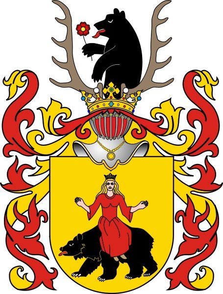 Особливе замилування викликає зображення короновaної дівчини, яку везе на спині ведмідь. Такий вражаючий сюжет бачимо, зокрема, у родових гербах української шляхти Косинських, Кендзирських, Дембінських, Але чому то мила дівчина довірливо любенько возсідає на спині дикого грізного звіра? Чому не боїться його? Здогадуєтесь? Авжеж, той ведмідь - то опікун, друг і прапредок роду (в уяві наших пращурів). Отже – родовий тотем везе Берегиню, Велику Матір роду, опікується нею.