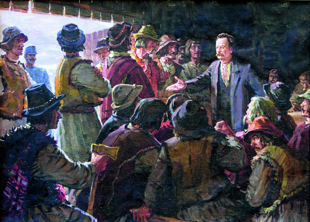 "БРАТИ СЕЛЯНИ! НАДХОДЯТЬ ВИБОРИ. – ТАКІ ЛИСТІВКИ В ЖОВТНІ 1895 РОКУ ПОШИРЮВАЛИ ОКОЛИЦЯМИ ПЕРЕМИШЛЯ. Тепер це місто на території Польщі, а наприкінці ХІХ ст. було одним із найбільших українських осередків. – Ви розумієте важливість цієї хвилі. Ви знаєте, що обрані до Державної Ради посли зможуть нас захистити від усіх кривд, знущань і зловживань, або можуть нас придушити ще більшими тягарами, ніж ті, які ми несемо. Отже, розумно і серйозно до справи, брати селяни. Нехай у Державній Раді займе місце наш щирий захисник і опікун. За важкі податки, за гірку військову службу ми маємо єдину можливість, тобто наше право вибирати послів. Не даймо вирвати собі це право. Брати селяни, ви не допустите до того, щоб селянським послом був магнатський син, син бучних панів. Ви не зрадите селянській справі, а чесно і сміливо виберете людину, свою з крові і плоті, людину, яка б гідно захистила ваші справи. Такою людиною є Іван Франко зі Львова".
